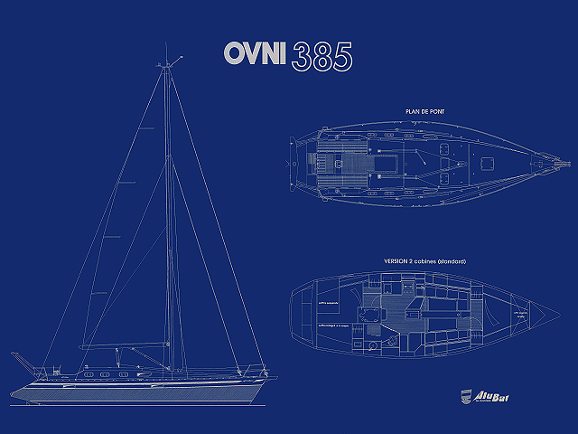Shaula3 is an OVNI 385 built in 2001, which we bought in France at the beginning of 2005. The OVNI range (meaning UFO, in French) is not a conventional choice: built by the french yard Alubat, which since 30 years specializes in light-alloy boats, with a multi-chine hull and lifting keel, and a prominent portal over a very long stern scoop which is a sort of trademark of the range. Still, connoisseurs will promptly recognize the features of a long-distance sailboat: extremely strong build, simple and over-dimensioned rig, conservative sail plan, classically rational interiors. Built on order (the waiting list is in the range of one year), these boats are often customised to the specific Customer wishes (and buyers of these boats are typically people with a long experience and very clear - and very personal - ideas on how they want their boat to be).