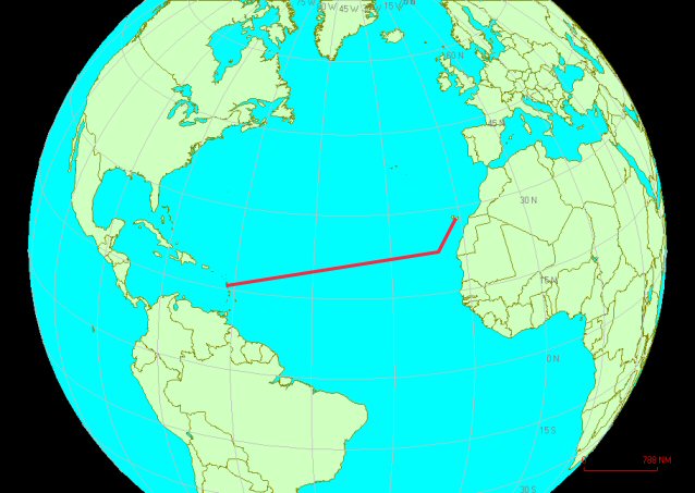 20 gradi nord e 30 ovest che è il classico punto dove si incontrano gli alisei: